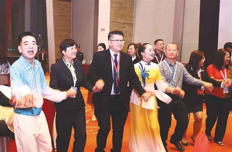 歌声嘹亮,咏唱浓厚乡情。来自美国南加州的海南乡亲史振利两鬓斑白,是联谊大会的老朋友。他说:“不少朋友都参加过多届大会,再次相见,很亲切、很激动。”