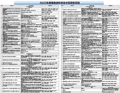 2022年度海南省科学技术奖共授奖85项,较去年增加25项,其中省自然科学奖30项,省技术发明奖4项,省科学技术进步奖共48项,省国际科学技术合作奖3项。