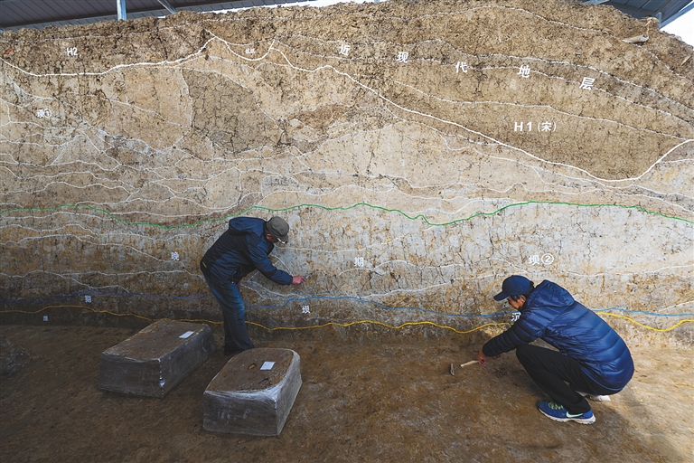 记者在位于遗址群东北部的熊家岭看到,其水利系统包括水坝、蓄水区、灌溉区和溢洪道等构成要素。现场解剖性发掘显示,熊家岭水坝早晚两期界限分明,晚期坝是在早期坝的基础上加高加宽扩建而成。“出土遗物、测年数据表明,早期坝的年代范围为距今5100年至4900年,是我国迄今为止发现最早且明确的水利设施。”湖北省文物考古研究院副研究馆员、屈家岭遗址考古项目领队陶洋说。