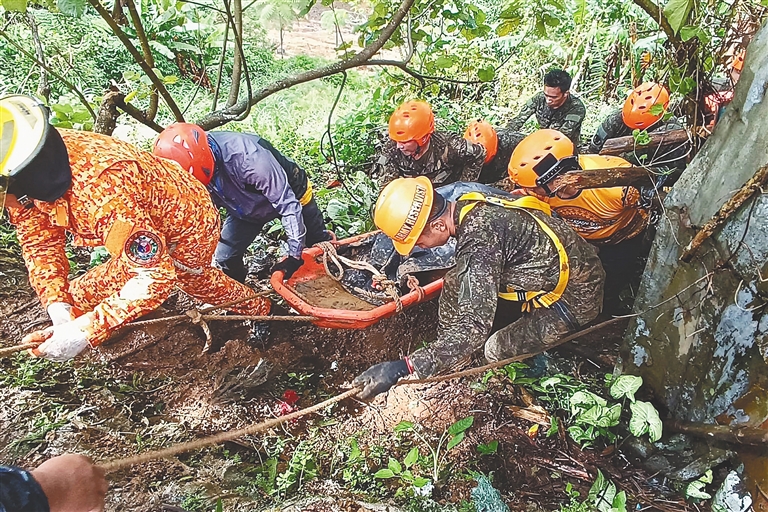 1月19日,在菲律宾金达沃省,搜救人员运送遇难者遗体。