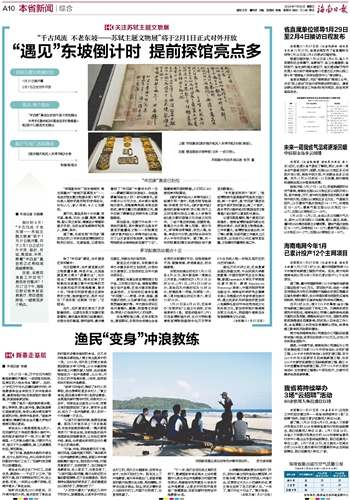 在王喆看来,此次展览展出的文物数量丰富、种类齐全,尤其是展览第三部分“居儋功业”,充分结合了海南特色,翔实反映了苏轼晚年在居儋三载中所取得的艺术成就和经历的逸闻趣事,看点十足。“相信市民游客通过这些珍贵的文物,能穿越时空,再次与这位‘不老东坡’近距离‘对话’。”王喆说。