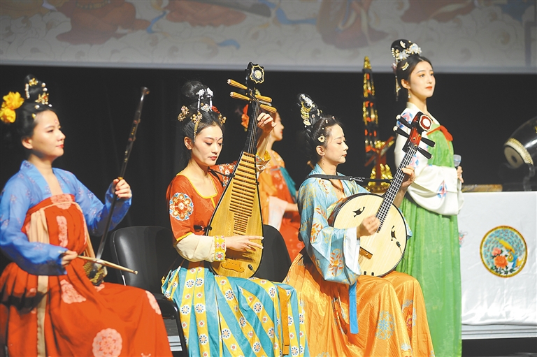 中国驻突尼斯使馆1月20日在突尼斯市文化城举行“欢乐春节”文化演出和中国非物质文化遗产展示,吸引众多突尼斯当地民众。当天,来自陕西省的艺术团展示了包括剪纸、皮影、木版年画、社火脸谱在内的非物质文化遗产。艺术团当晚举行了中国传统鼓乐演出,身着中国唐代服饰的演奏家用鼓、笙、古筝、二胡、琵琶等乐器演奏了《春江花月夜》《上元乐》《青春舞曲》等乐曲。