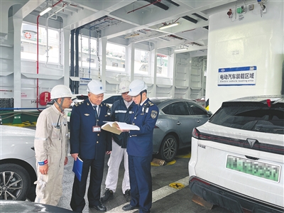 “在不影响船舶装载的前提下,我们负责登船进行现场检查。”从每天2班逐步增加到4班,运输的车辆翻倍,聂守亮和同事们也“顶配”上岗,对每一班次新能源车专船进行全覆盖专业“体检”。