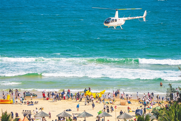 ②2月13日,在陵水清水湾海滨,游客们惬意享受度假生活。