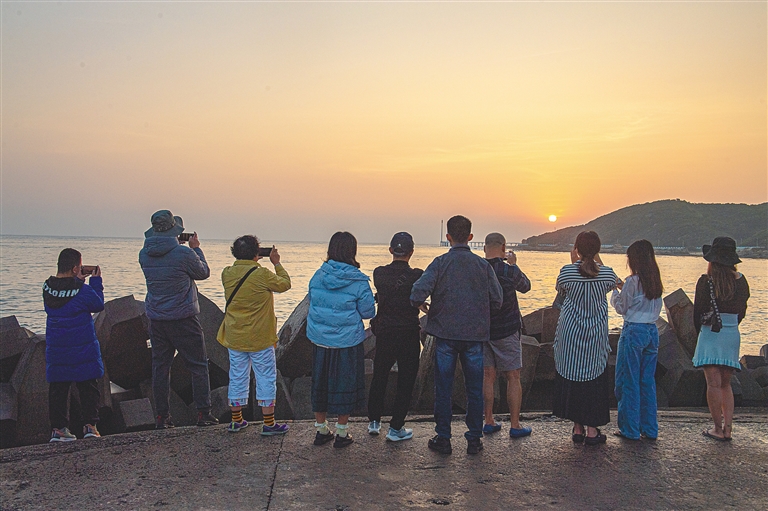 ③2月12日,三亚海棠区滕海社区后海村,游客举起手机记录海边日出美景。 本组图片除署名外由 本报记者 袁琛 摄