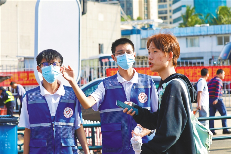 图为志愿者在海口秀英港积极引导旅客。本报记者 韦茂金 摄