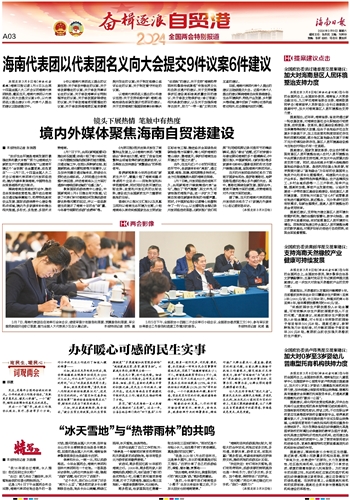 目前,海南代表团代表个人提出的建议正陆续提交大会。这些代表个人提出的建议围绕海南自由贸易港建设、生态环境保护、特色产业发展、乡村振兴等领域,集中反映了与群众切身利益密切相关、社会普遍关注的问题。