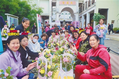 “我平常就喜欢买花,今天能和陌生的朋友们一起插花,是一种不一样的体验。”来自重庆的高女士捧着亲手制作的花篮,不停拍照,“举办这样的活动非常棒,节日氛围感十足!”