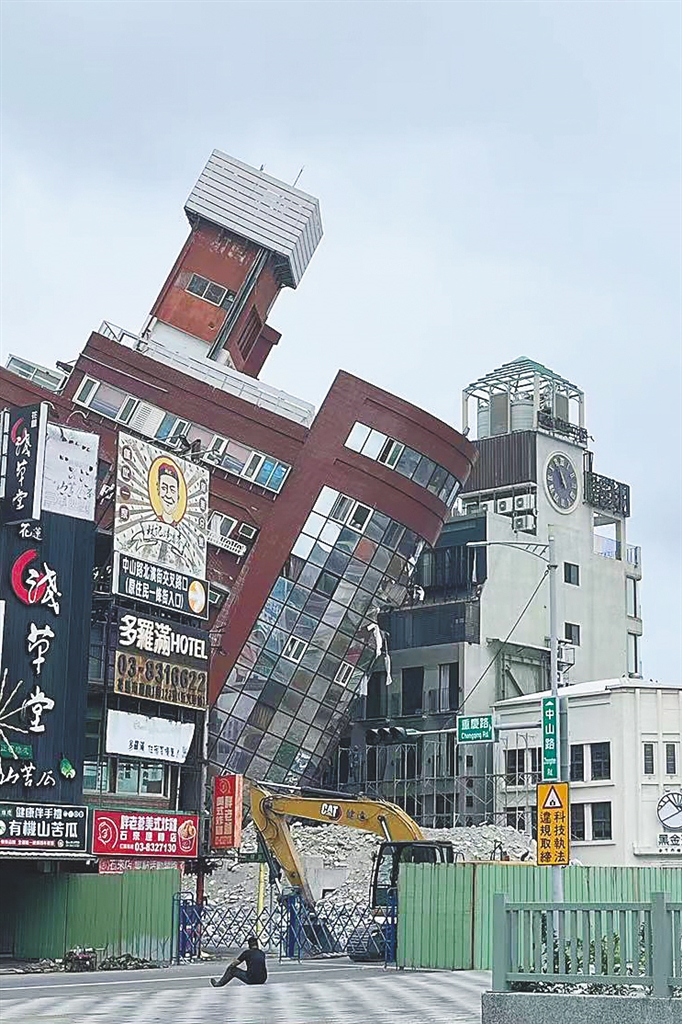 天王星大楼5日上午9时许进行了拆除开工仪式。这栋大楼在3日发生的地震中严重倾倒,一度有25名居民受困,24人安全救出,1人罹难。据花莲县工作人员介绍,大楼将从正面玻璃开始,由上至下进行拆除。