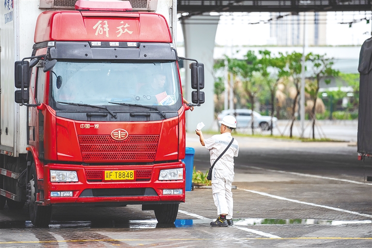 连日来,海口新海港的工作人员坚守岗位,保障车辆过海平稳有序。