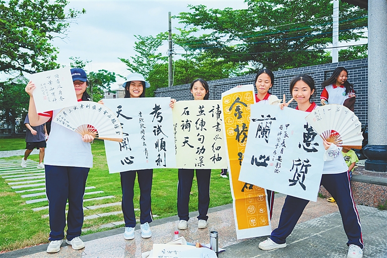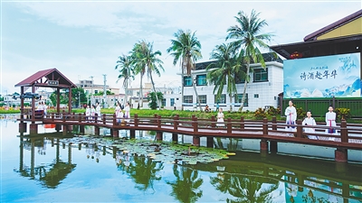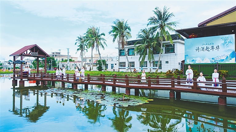 这一天,万宁市人民公园广场改头换面,设置蓝色的古建筑造型大门、透明纱帐,推出古筝演奏、古典舞演出等多种演出,现场还有国风换装体验、知名书画家写画团扇、手作诗词手工包等活动,为市民呈上了一场国风气质满满的文化盛宴,让诗词文化、历史文化、书画文化,以不同方式悄然浸润市民生活,让中华文化之韵在潜移默化中传承于心。