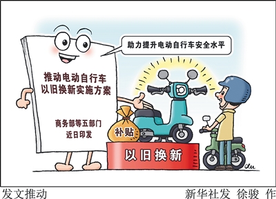 答:今年4月,国务院安委会部署开展电动自行车安全隐患全链条整治行动,国务院办公厅印发《电动自行车安全隐患全链条整治行动方案》,鼓励有条件的地方推动电动自行车以旧换新。7月,国家发展改革委、财政部印发《关于加力支持大规模设备更新和消费品以旧换新的若干措施》,将电动自行车以旧换新纳入支持范围。为落实上述政策精神,商务部等5部门联合出台《推动电动自行车以旧换新实施方案》,推动开展电动自行车以旧换新工作。