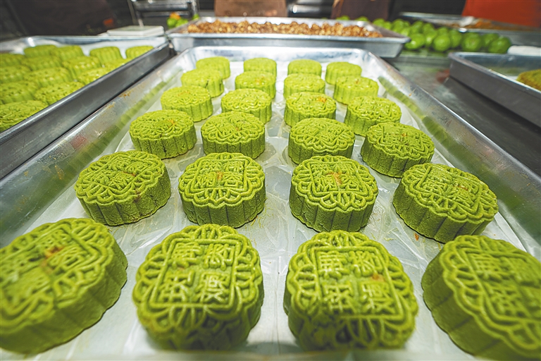 “别小看这一个小小的月饼,手工工序占了60%以上。”符志仁介绍,如今在延续老一辈制作技艺的同时,他们还注重技艺上的主动创新。比如研发热包装技术,使得月饼最长可存放45天;调整饼皮与糖浆的配比,使月饼饼皮不易碎等。