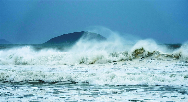 | 9月6日,受台风“摩羯”影响,万宁市东澳镇港门嘴海滩出现风暴潮。海南日报全媒体记者 陈元才 摄 |