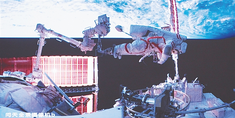 当日21时57分,经过9小时的出舱活动,神舟十九号乘组航天员蔡旭哲、宋令东、王浩泽密切协同,在空间站机械臂和地面科研人员配合支持下,完成了空间站空间碎片防护装置安装、舱外设备设施巡检及处置等任务。出舱航天员蔡旭哲、宋令东已安全返回问天实验舱,出舱活动取得圆满成功,再次刷新中国航天员出舱活动时长纪录。航天员蔡旭哲时隔两年再度漫步太空,宋令东成为我国首名进行出舱活动的“90后”航天员。