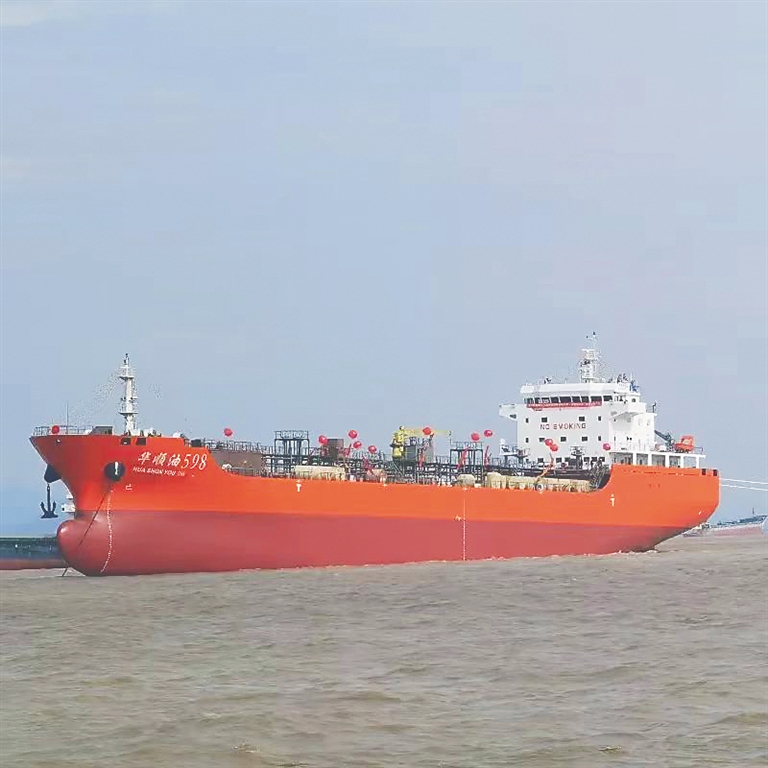 同日,另一艘“华顺油598”轮在浙江台州吉水,总长139.80米,型宽20米,型深11.20米,总吨位9300吨,液货舱舱容约1.7万立方米,载重量13160吨。该船所有建造规范和规则均符合或领先于《国内航行海船法定检验技术规则》,船舶的工艺、建造和设备均达到一流水平,符合国际一流建造经验和船级社的要求。