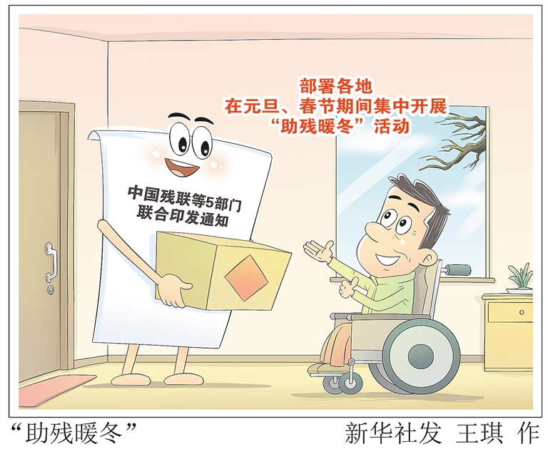新华社北京12月28日电(记者高蕾)记者28日从中国残联获悉,中国残联、民政部、全国总工会、共青团中央、全国妇联近日联合印发通知,部署各地在元旦、春节期间集中开展“助残暖冬”活动,加强困难重度残疾人帮扶工作。