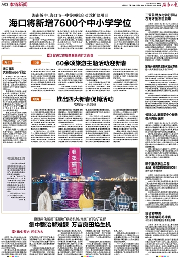 海口琼山中学新大洲校区扩建项目位于海口市琼山区新大洲大道南侧,总建筑面积逾6万平方米,拟建成4栋6层教学楼、1栋6层实验楼、1栋6层综合楼、1栋6层科技楼、5栋10层宿舍楼、1栋地下1层地上3层食堂(含报告厅)、1栋地下1层地上2层体艺馆等。该项目预计2026年建成投用,届时可新增60个班级共3000个学位。