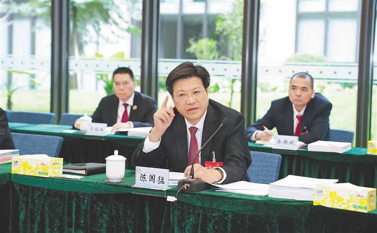 | 1月14日,参加海南省七届人大四次会议的省人大代表分组审议政府工作报告。图为陈国猛代表参加澄迈代表团审议。海南日报全媒体记者 王凯 摄 |