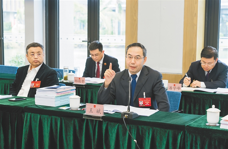 | 1月14日,参加海南省七届人大四次会议的省人大代表分组审议政府工作报告。图为王斌代表参加临高代表团审议。海南日报全媒体记者 宋国强 摄 |