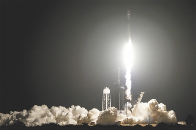 美国私营企业“萤火虫”航空航天公司的月球着陆器“蓝色幽灵”号搭乘太空探索技术公司的“猎鹰9”火箭于美国东部时间1月15日凌晨发射升空,展开探月之旅。图为在美国佛罗里达州肯尼迪航天中心附近拍摄的“猎鹰9”火箭发射升空画面。新华社/美联