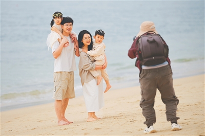 近日,游客在亚龙湾沙滩旅拍,享受三亚的温暖冬日。