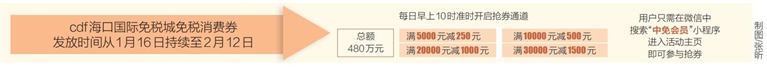 据悉,海口市秀英区政府携手cdf海口国际免税城推出专项促消费活动,将为广大消费者发放总额480万元的免税消费券,旨在进一步激发新春消费活力。