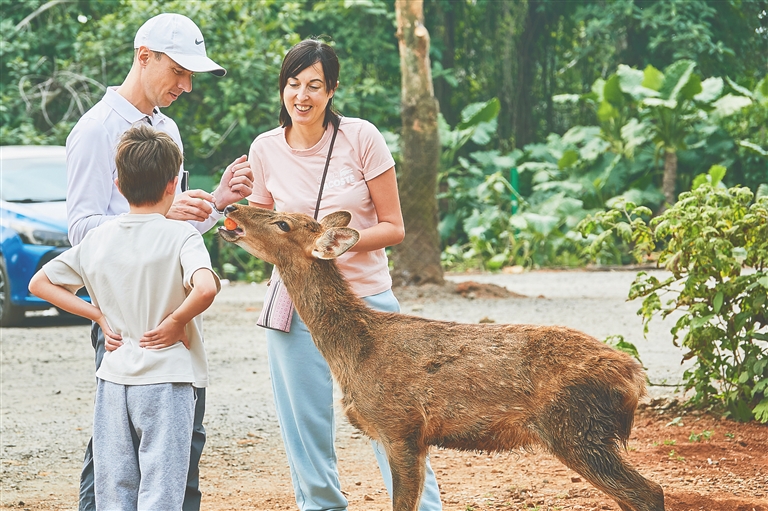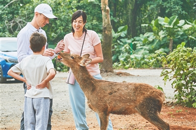 近日,市民游客来到海南热带野生动植物园,与动物亲密接触。