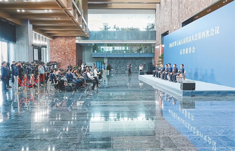 1月17日,海南省第七届人民代表大会第四次会议第三场记者招待会在海口举行,来自儋州市、万宁市、乐东黎族自治县、定安县、昌江黎族自治县、白沙黎族自治县代表团的6位人大代表参会,向与会媒体记者介绍过去一年各自市县的亮点成效,阐述新一年的发展规划。