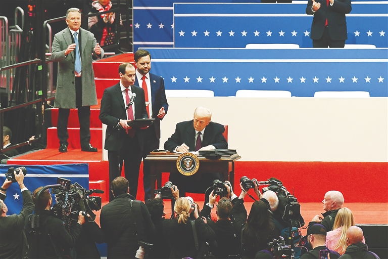 在就职后的数小时内,特朗普签署了一系列行政令,其中包括美国将再次退出旨在应对气候变化的《巴黎协定》、退出世界卫生组织等。分析人士认为,这些举措表明特朗普进一步将注意力投向国内,更多强调美国利益优先,其政策的单边主义、霸权主义色彩更加浓厚。