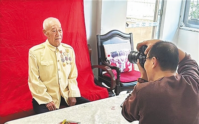 本报讯(海南日报全媒体记者张文君 通讯员邹龙伟 陶昱)“爷爷,笑一笑!”近日,在海口市美兰区蓝天路省军休所,随着相机“咔嚓”一声,抗美援朝老兵李大云嘴角上翘的一瞬间,被摄影师定格了下来。春节前夕,省退役军人事务厅联合省数码摄影协会,为全省参加抗美援朝的122名健在老兵拍摄肖像照及全家福,用镜头定格他们的光辉形象与幸福时光,向他们致以崇高的敬意和深深的关爱。