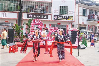 五指山水满乡新村村第二届国潮民俗文化庙会在新村游客服务中心开幕,非遗展演、特色美食为节日增添了氛围。