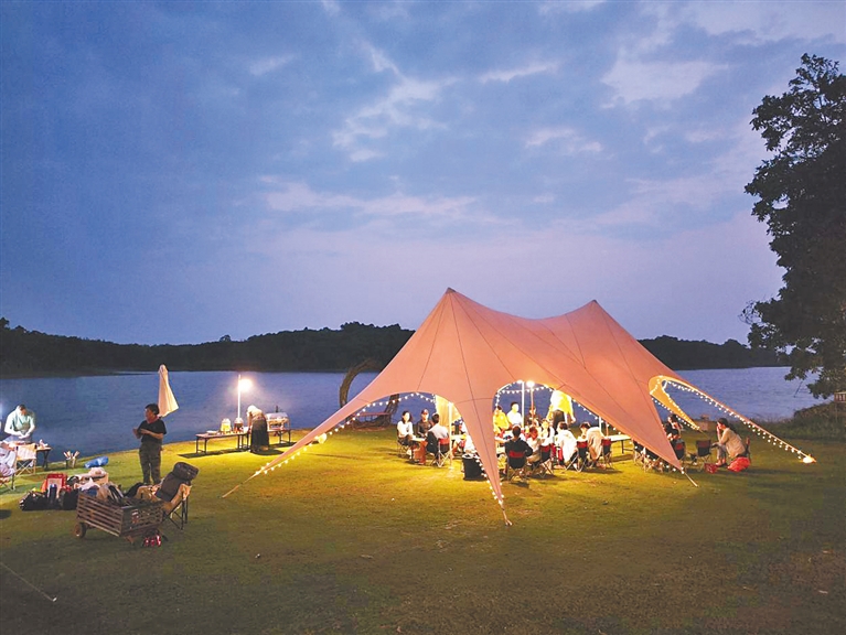 这是藏在中铁·诺德丽湖半岛中的小众宝藏地,游客夜晚露营在这里,可以坐拥湖畔星辰。