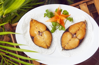 今年40岁的文昌疍家渔民冯学琼16岁便跟随父亲出海捕捞马鲛鱼。在他看来,过年烹饪马鲛鱼,最经典的做法是生煎。热锅热油,放入一指厚的马鲛鱼片。随着温度升高,鱼片的油脂渗出,发出“滋滋”的响声。煎熟后的马鲛鱼片两面金黄,骨酥肉脆,用筷子一戳就分层了。
