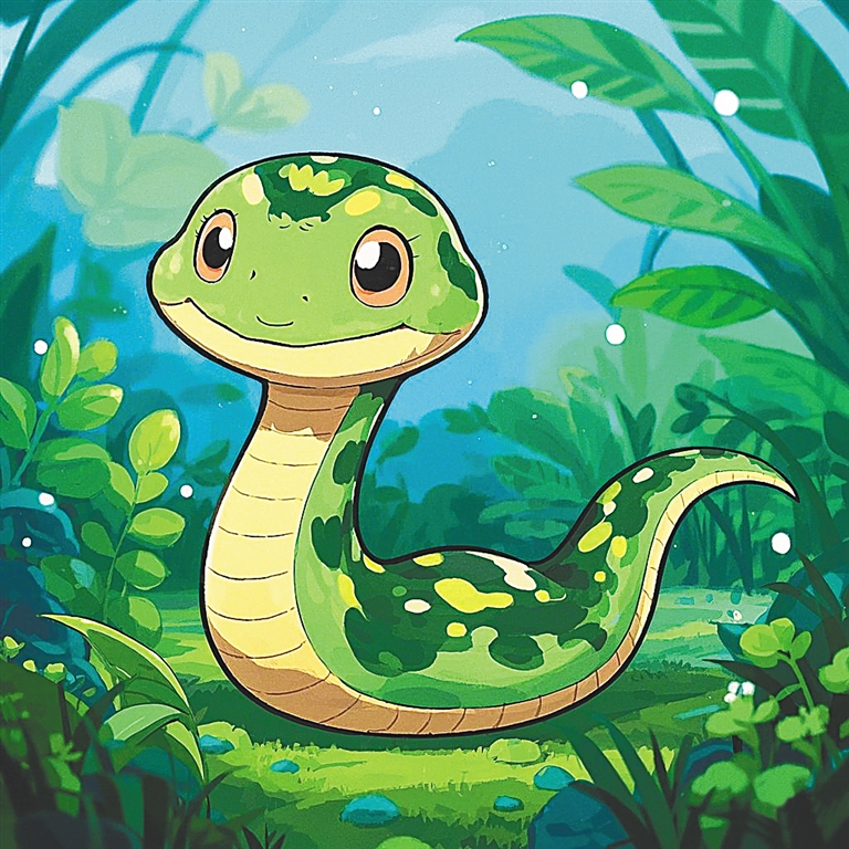 皮肤翠绿鲜艳,性格温顺,无毒不伤人,是栖息在树上的“绿精灵”。