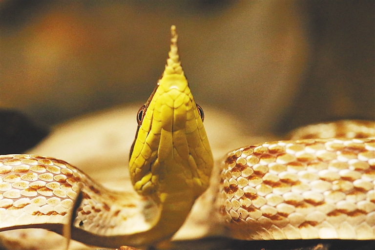 你听!“嘶嘶……”原矛头蝮一边吐着信子,一边寻觅猎物。它们会用舌尖搜集和感受环境中的气味因子。