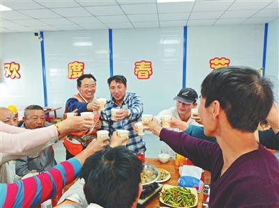 ② 位于海口市国家高新区的生物医药创新公共服务平台项目现场,建设者齐聚一堂吃年饭。姜勇 摄