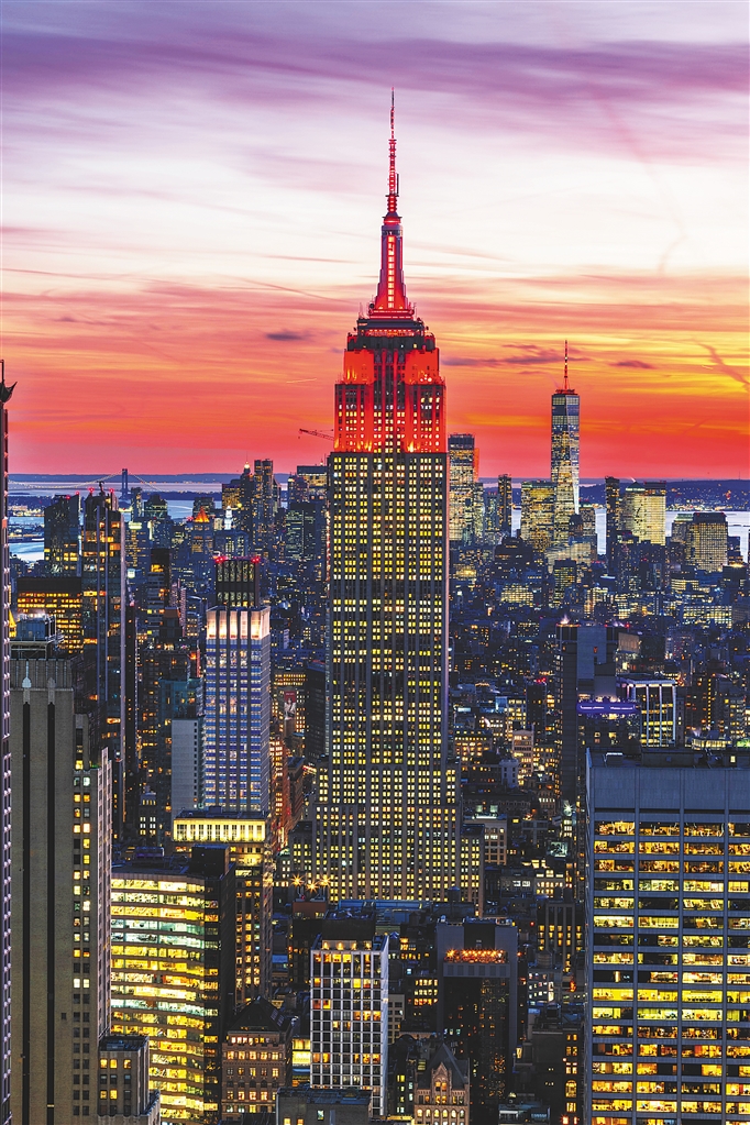 美国纽约多个地标建筑在28日除夕夜亮起“中国红”,庆祝蛇年春节到来。帝国大厦在日落时分亮起“中国红”,这是该建筑连续第25年以此方式庆祝中国春节。当晚,世贸中心一号楼和世贸中心交通枢纽站也亮起“中国红”,并将持续到30日。