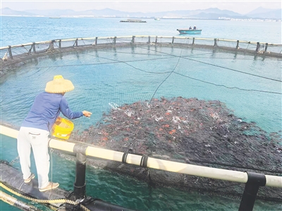 网箱里的石斑鱼亲鱼品种不同,个头、颜色各有差异,食量自然也是有大有小,不过在保种基地,它们都得遵守统一的用餐时间。