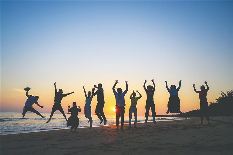 ③ 2月1日,三亚市崖州区镇海村,游客在海边玩耍。海南日报全媒体记者 袁琛 摄