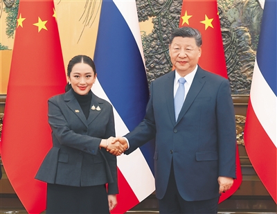 新华社北京2月6日电(记者董雪 邵艺博)2月6日上午,国家主席习近平在北京人民大会堂会见来华进行正式访问的泰国总理佩通坦。