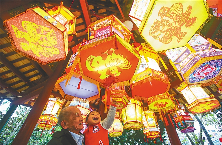 在海南话里,“灯”与“丁”发音相同,有“纳吉添丁”“人丁兴旺”等美好寓意,因此人们十分重视春节期间灯元素的运用。