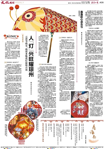 王蒲霖说,花灯造型创新越来越多,可技术进步的同时,也要守住传统的魂。除了琢磨新技术,他如今还坚持每年制作手工花灯,用以探索传统花灯的更多可能。开竹、开篾、扎框、扎架、做手攀,许多工序中,他都尝试融入书法、彩绘、剪纸、刺绣等传统文化元素。