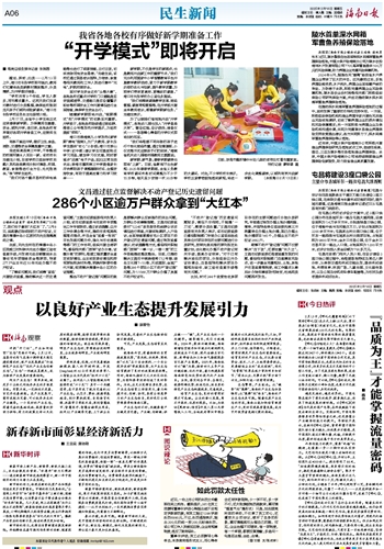 海口市滨海第九小学发布《新学期“满电”指南》,为广大教师、家长及学生提供“收心”小妙招;海口市琼山中学(初中部)建议学生可提前购买学习用品,增加学习仪式感,同时要逐步“远离”电子产品,回归正常生活状态;琼海市嘉积第三中学提倡家长尽快帮助孩子调整睡眠时间、合理安排饮食,有助于提高注意力和学习效率……
