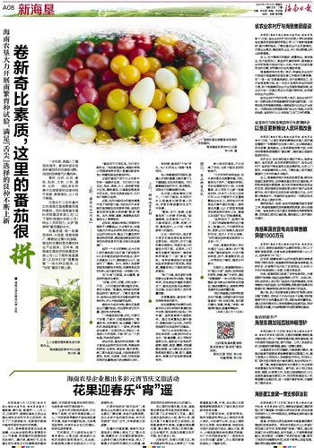 “番茄可不只有红色,它们有千般形态。”走进番茄基地,海垦科学院公司蔬菜育种负责人杨瑾如数家珍地介绍着地里各类番茄材料。