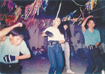邓伟忠对当晚的场景记忆犹新。年轻人们穿着时下流行的宽松T恤和高腰阔腿牛仔裤,一起跳起“迪斯科”,热闹的氛围吸引了不少村民。“一开始大人们是在周围观看,后来他们自告奋勇,都要上台表演,有的唱歌,有的跳舞。”邓伟忠说,那时六罗村物质条件并不丰富,这个晚会像一个小小的“桃花源”,让忙了一整年的村民得以休憩、大笑。