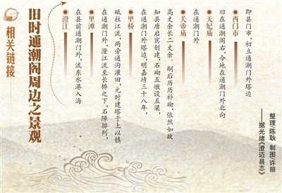 明代正德十年澄迈知县陶建吟咏澄迈八景时,其中有《通潮飞阁》:“风雨何年杰阁倾,闲来吊古不胜情。野花绣地能埋址,潮水依城为志名。”尽管“潮水依城”道出了澄迈与海潮亲密,但这时他所写的通潮飞阁已成废墟,所谓“野花绣地”是故址遍地野花。面对此景,陶建徒有吊古的伤怀,也感慨自己远离故土,为官漂浮,在烟霞日暮下怀乡不已。明代逸士曾沂的通潮阁诗与陶建诗同题,不同的是陶建诗为七律,曾沂诗为七绝,诗道:“通潮门外路逍遥,荒草残碑对断桥。飞阁流丹人何见?海云还涌旧时潮。”这首诗虽小,却有很深的意味。他所见的也是通潮阁的荒凉,但在“海云还涌旧时潮”里表达的是斗转星移、物是人非的深沉喟叹。