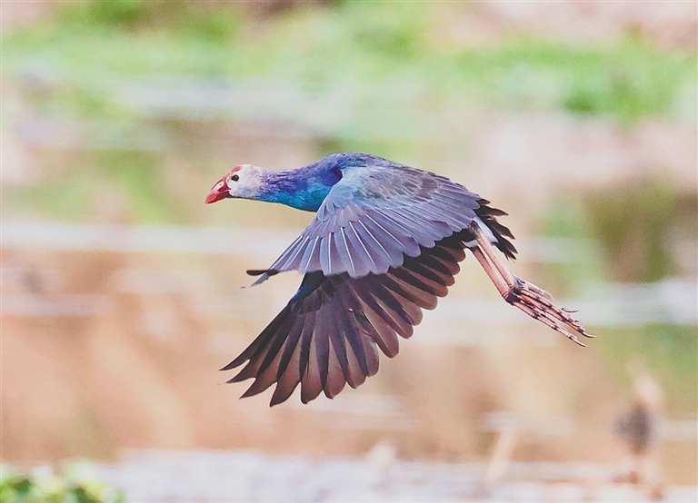 ② 近日,有“最美水鸟”之称的紫水鸡现身海尾国家湿地公园。