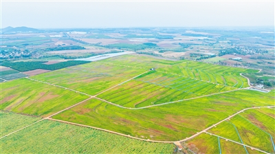 沃野茵茵,稻浪滚滚。2月20日,昌江黎族自治县十月田镇垦地融合现代农业产业园(核心示范区)内,一望无际的连片稻田诉说着春日的喜悦。