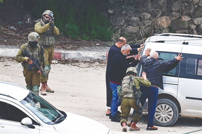 以色列军队19日在巴勒斯坦约旦河西岸图巴斯市附近发起军事行动,打死3名巴勒斯坦人,拘捕两人。自巴勒斯坦加沙地带停火协议1月19日生效后,以军在约旦河西岸持续发起军事行动,迫使大批巴勒斯坦人逃离家园。据美联社报道,目前约旦河西岸巴勒斯坦人流离失所者规模已达到1967年第三次中东战争以来最为严重水平。图为在约旦河西岸北部图勒凯尔姆难民营,以色列士兵对行人搜身。新华社/法新